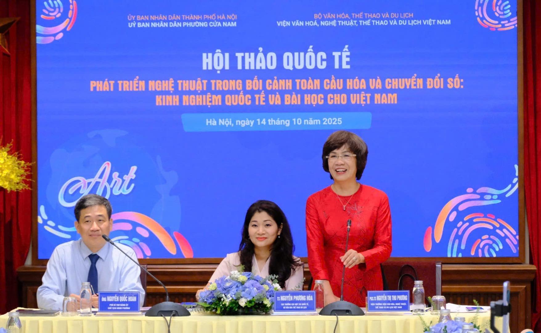Sáng 14.10, tại Hà Nội, Viện Văn hóa, Nghệ thuật, Thể thao và Du lịch Việt Nam phối hợp với Ủy ban nhân dân phường Cửa Nam (Hà Nội) tổ chức Hội thảo quốc tế “Phát triển nghệ thuật trong bối cảnh toàn cầu hóa và chuyển đổi số: Kinh nghiệm quốc tế và bài học cho Việt Nam”.