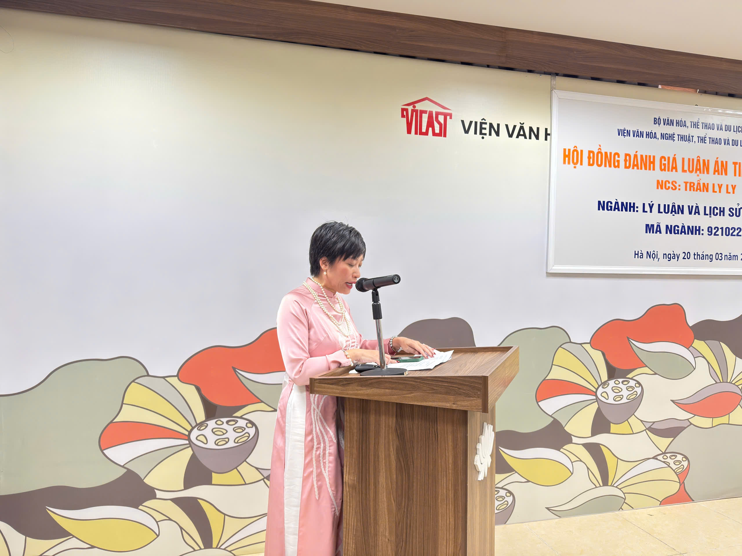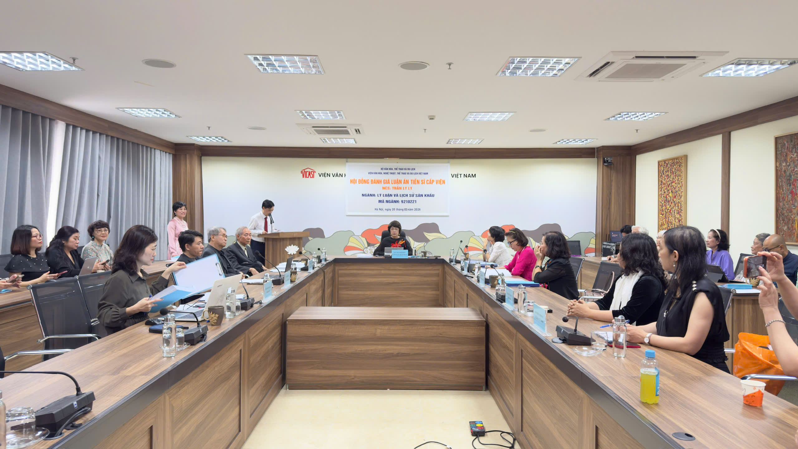Sáng ngày 20/03/2026, Viện Văn hóa, Nghệ thuật, Thể thao và Du lịch Việt Nam tổ chức lễ bảo vệ luận án tiến sĩ cấp Viện cho NCS Trần Ly Ly với đề tài: Múa đồng ở châu thổ Bắc Bộ - từ nghi lễ đến sân khấu, chuyên ngành: Lý luận và lịch sử sân khấu, mã số: 92210221, do GS.TS Nguyễn Thị Hiền và TS. Trần Thị Minh Thu đồng hướng dẫn.